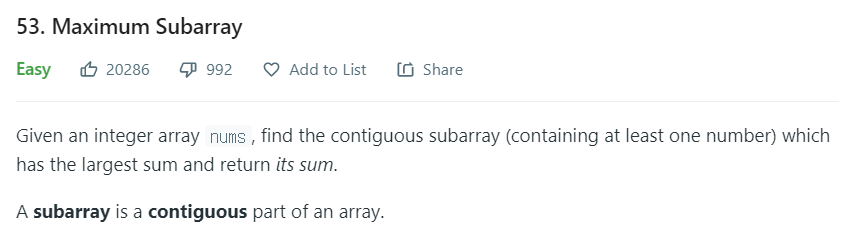 # [출처] https://leetcode.com/problems/maximum-subarray/discuss/20396/Easy-Python-Way