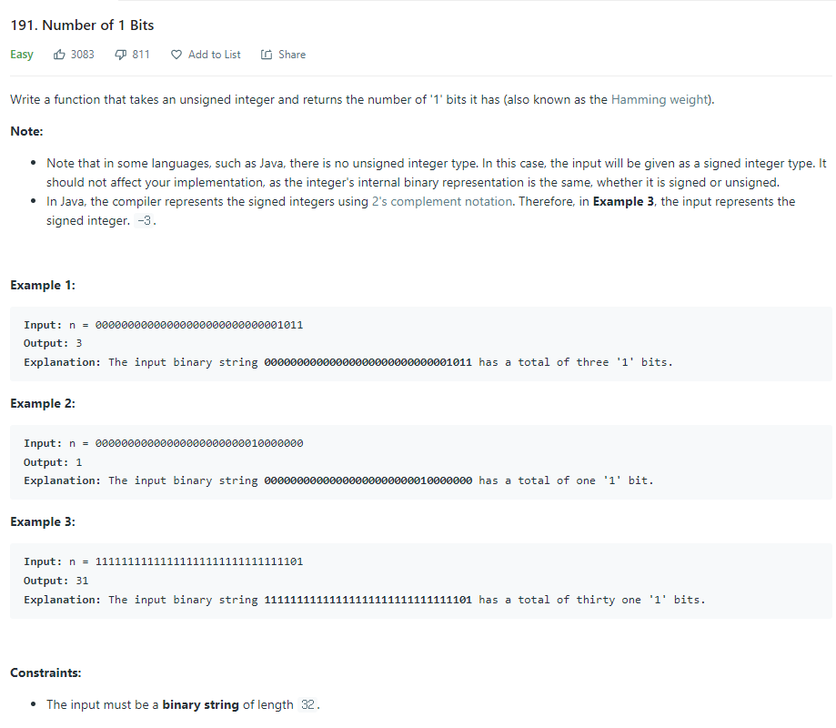 https://leetcode.com/problems/number-of-1-bits/