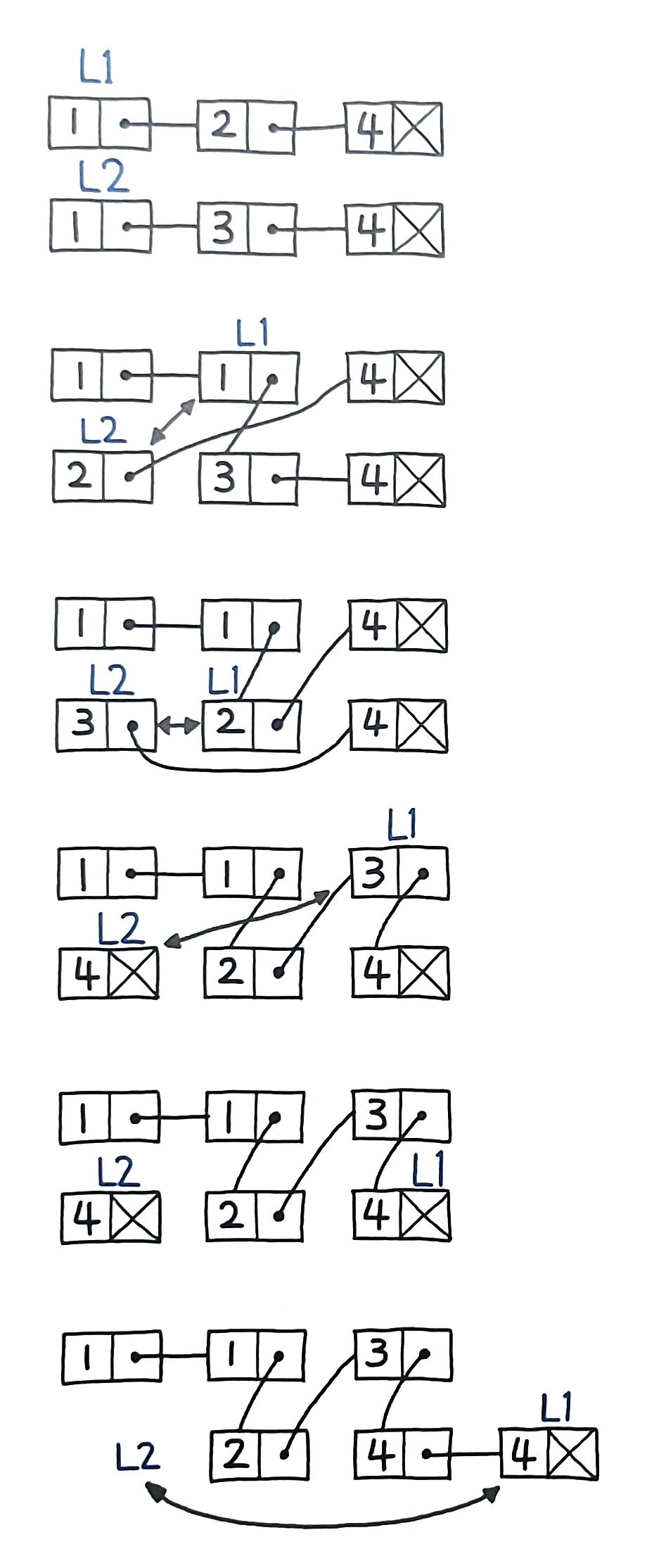 l1.next = self.mergeTwoLists(l1.next, l2)