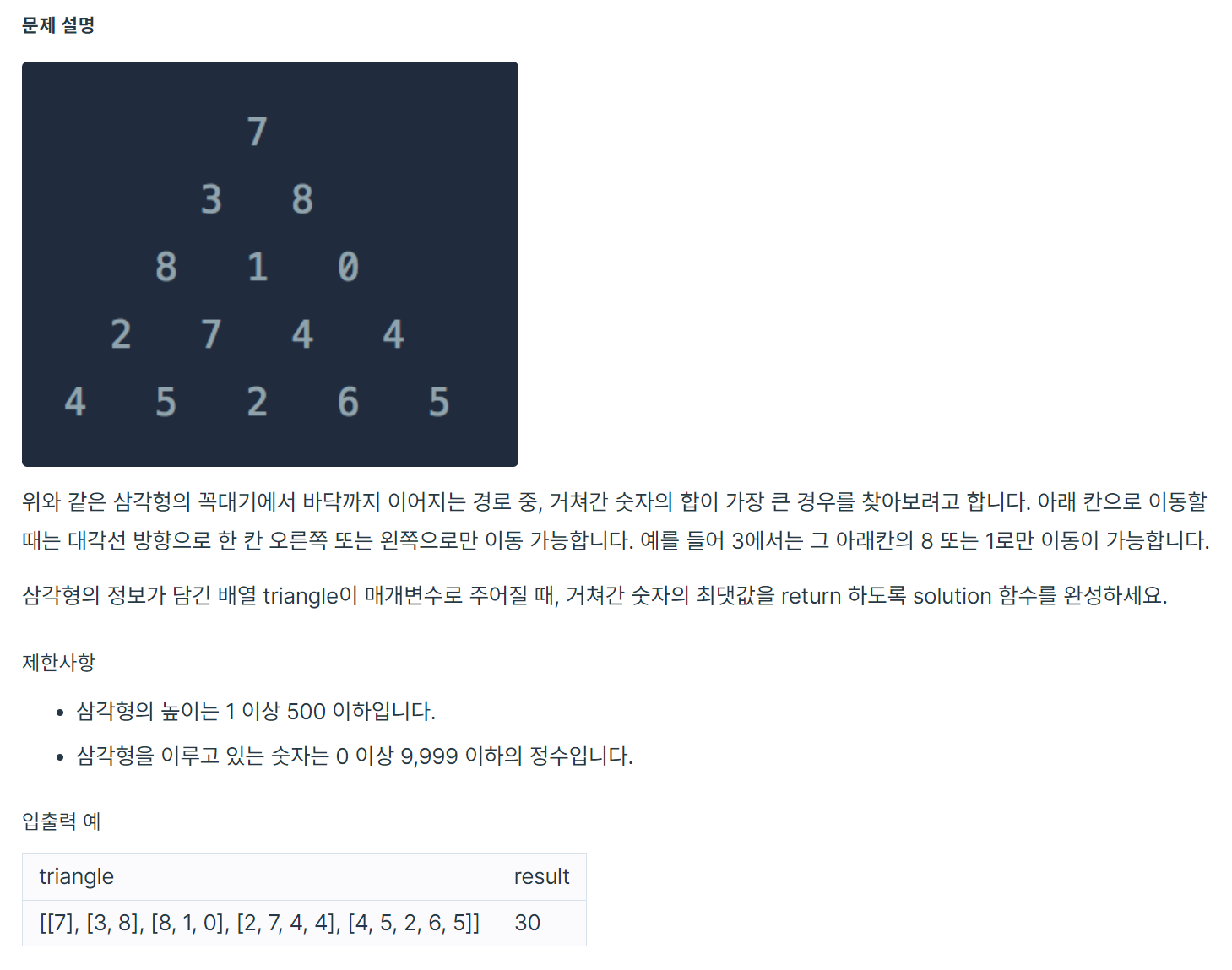 https://school.programmers.co.kr/learn/courses/30/lessons/43105?language=python3