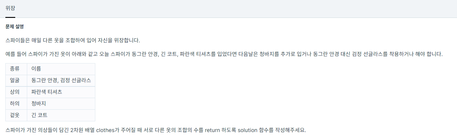 https://programmers.co.kr/learn/courses/30/lessons/42578